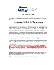 CONCRETE FOUNDATIONS AND TRENCH SYSTEM ID: 25-09-032 Posted: September 2, 2025 Deadline: September 25, 2025 Attachments Document Icon Document Date AD – 25-09-032 September 2, 2025