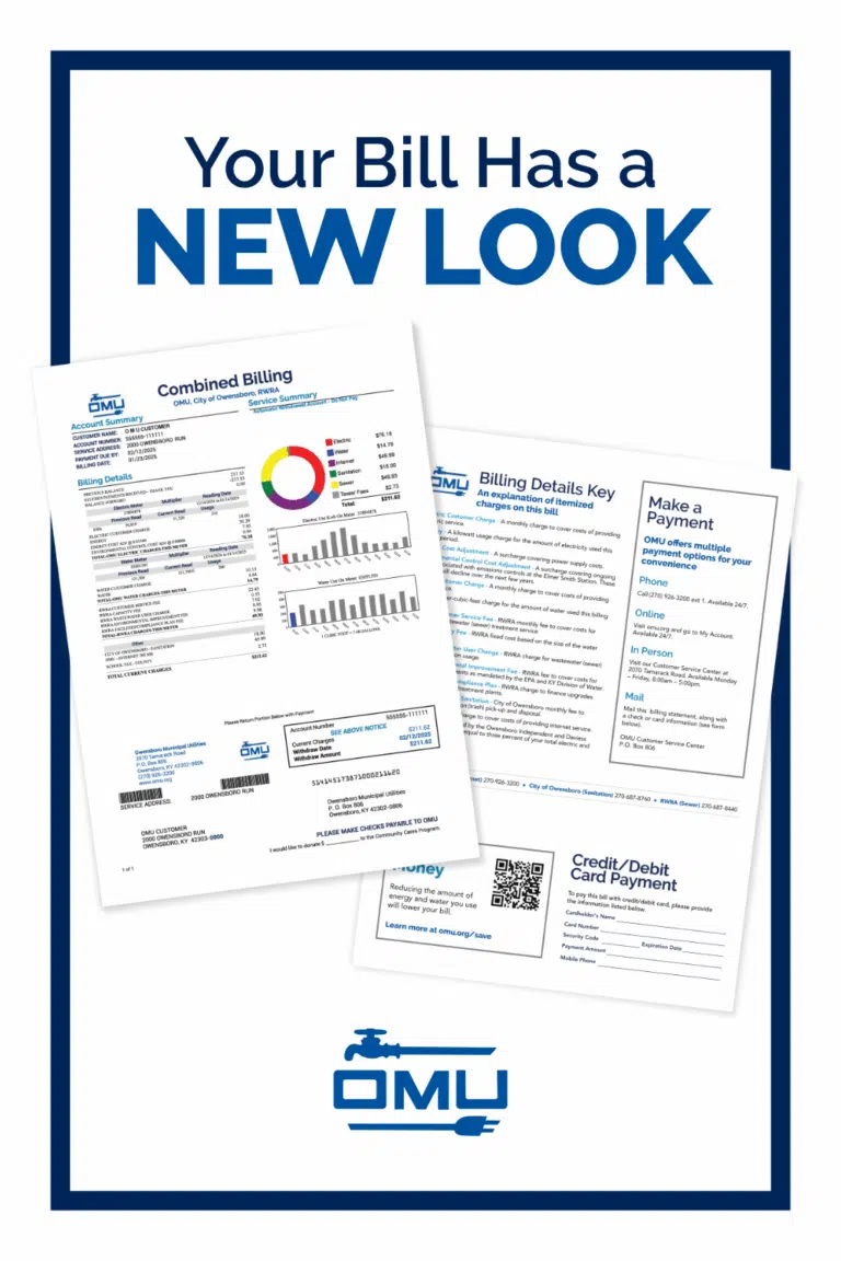 Beginning in October, Owensboro Municipal Utilities customers may notice a new and improved design for their Combined Services Billing Statement. The new look is designed to be easier to read and provide additional information that is useful for you as a customer. For instance, a colorful graph provides a breakdown of the billing charges and graphs give you helpful information when reviewing your water and electric consumption over the last…